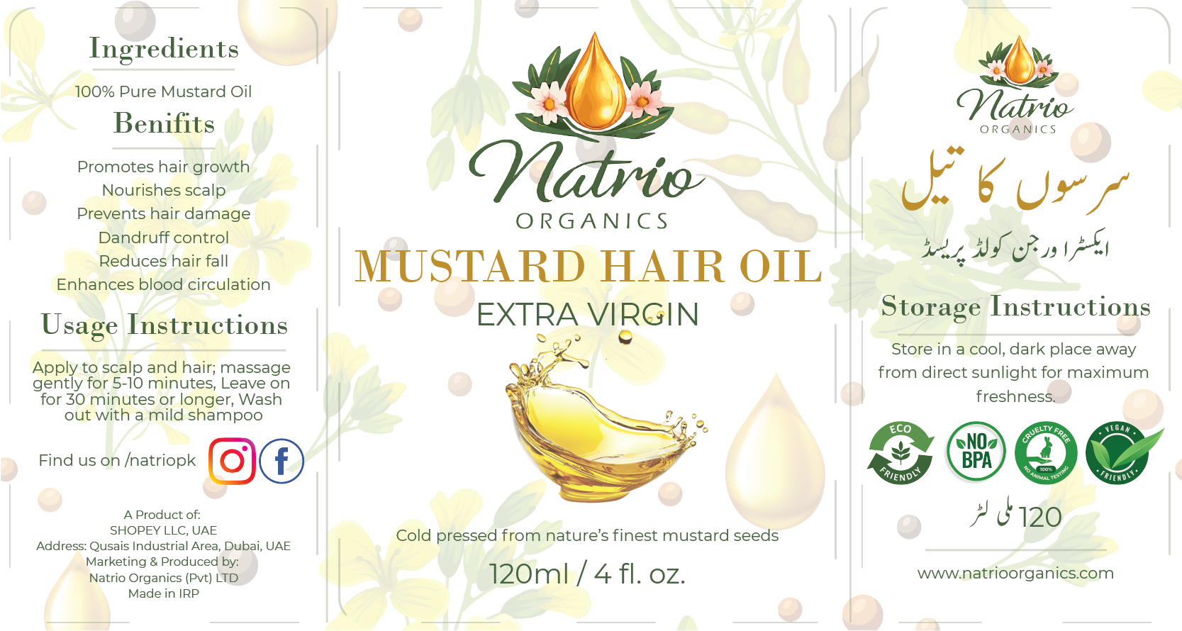 Natrio Organics Mustard Oil (60 ml) is a natural, nutrient-rich oil crafted to support healthy hair and overall wellness. Extracted from high-quality mustard seeds, this traditional oil is known for its powerful nourishing and strengthening properties. Rich in essential fatty acids, vitamins, and antioxidants, it helps promote stronger, thicker, and healthier-looking hair from root to tip.